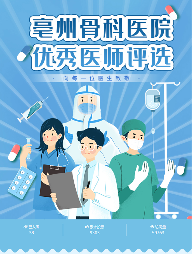 每周六、周日,亳州骨科醫(yī)院特聘省內(nèi)(蚌埠醫(yī)學(xué)院)知名專(zhuān)家:周建生教授、肖玉周教授、官建中教授、吳敏教授親臨我院長(zhǎng)期坐診、查房、預(yù)約手術(shù)等。