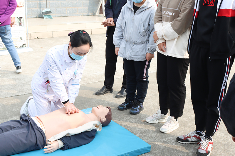 與此同時(shí),護(hù)理部在現(xiàn)場(chǎng)為大家?guī)?lái)了精彩的急救知識(shí)講座,許遠(yuǎn)護(hù)士長(zhǎng)更是“手把手”為大家演示了心肺復(fù)蘇術(shù)的具體細(xì)節(jié),使參加義診的教職工及學(xué)生更直觀的掌握這些生死攸關(guān)的“絕技”,收獲了一致好評(píng)。