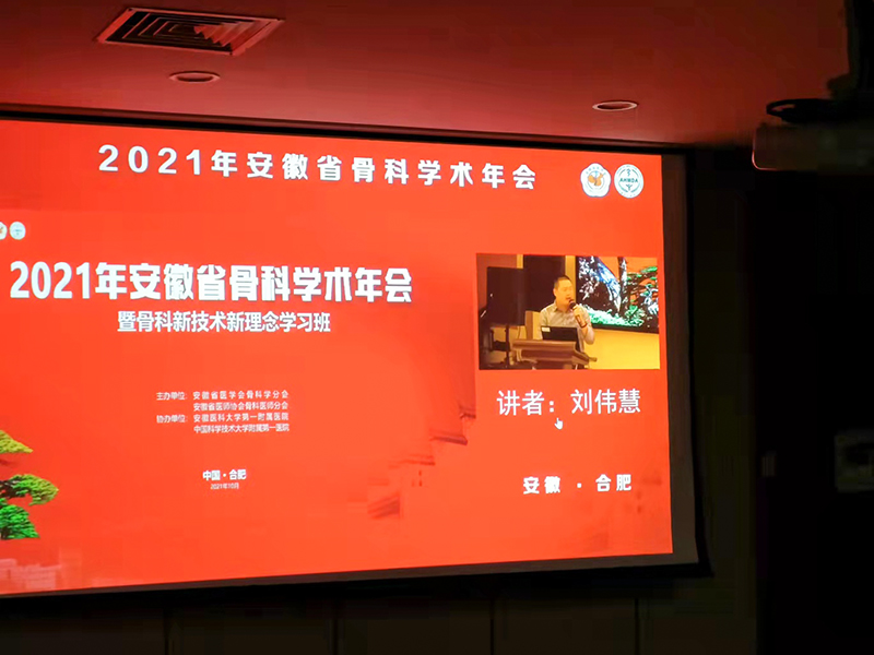 2021年10月28至30日,由安徽省醫(yī)學(xué)會骨科學(xué)分會、安徽省醫(yī)師協(xié)會骨科醫(yī)師分會主辦,安徽醫(yī)科大學(xué)第一附屬醫(yī)院、中國科學(xué)技術(shù)大學(xué)附屬第一醫(yī)院協(xié)辦的安徽省骨科學(xué)術(shù)大會在綜合性國家科學(xué)中心合肥隆重召開,大咖云集、群英薈萃,我院骨科劉偉慧主任代表亳州骨科醫(yī)院受邀參加了本次會議,并榮幸在【創(chuàng)傷骨科會場】通過課件《有限切開復(fù)位經(jīng)皮克氏針固定SandersⅡ、Ⅲ型跟骨骨折》與現(xiàn)場專家、同道交流。