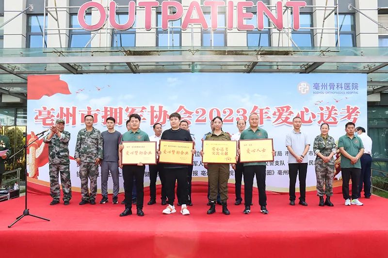 2023年5月31日上午9:00時,“亳州市擁軍協(xié)會愛心送考開幕式”在亳州骨科醫(yī)院隆重舉行。本次活動旨在為高考學(xué)生及家屬提供愛心送考便利服務(wù),并表達濃濃的關(guān)愛之情,亳州骨科醫(yī)院作為贊助方出席了本次活動。