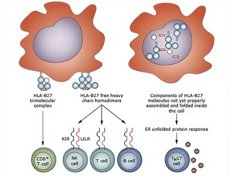 這也太復(fù)雜了吧?其實我們可以簡單的理解為HLA家族中的一大類蛋白質(zhì)分子,分布在細(xì)胞的表面,日夜不停工作,發(fā)揮它獨特的作用。B27是HLA家族的一個成員。