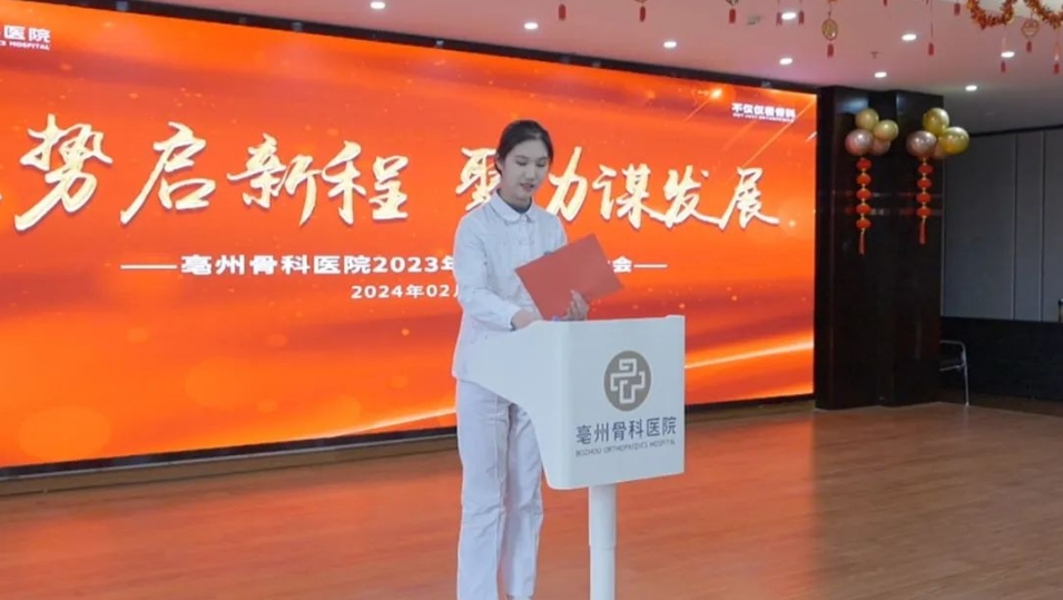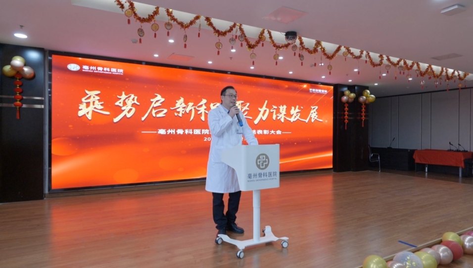 表彰會開始,亳州骨科醫(yī)院董事長常永光致辭:他首先代表董事會,向辛勤工作在醫(yī)療一線的醫(yī)護人員、默默奉獻的后勤保障人員以及為醫(yī)院發(fā)展付出努力的全體員工表示最誠摯的感謝和崇高的敬意!同時對過去一年大家的辛勤付出和顯著成績表示肯定。他指出,2024年是醫(yī)院實現(xiàn)醫(yī)療質量全面提升、學科全面跨越的關鍵之年。為此,我們要繼續(xù)保持團結協(xié)作、奮發(fā)有為的精神狀態(tài),不斷提升自身素質、醫(yī)療技術和服務水平,為患者提供更優(yōu)質的服務,努力成為全市標桿醫(yī)院。