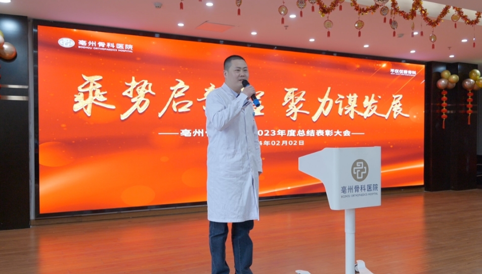亳州骨科醫(yī)院院長廖中亞發(fā)表2023年度工作總結報告,他說:2023年,亳州骨科醫(yī)院在上級部門的悉心關懷以及院委會的正確領導下,以患者為中心,提升服務質量,推進“1412工程”,全院職工拼搏努力,醫(yī)院各項指標均創(chuàng)歷史新高。2024年是醫(yī)院第一個五年計劃的收官之年,也是醫(yī)療質量、學科跨越的攻堅之年,需主動作為,完善協(xié)同機制,抓重點、補短板、強弱項,重落實,完善醫(yī)療、學科、運營三大協(xié)同機制,為全院各項事業(yè)高質量發(fā)展蓄勢賦能。