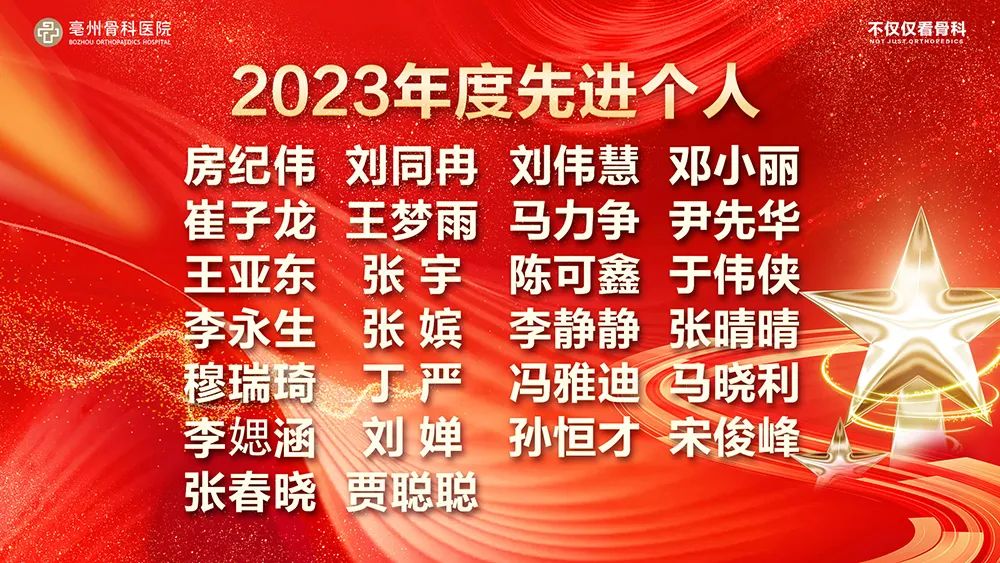 2023年,我們共同見證了許多令人感動的故事和難忘的瞬間。這一年,亳州骨科醫(yī)院的每一位員工積極進取,團結協(xié)作,在工作中涌現(xiàn)出一批先進集體與個人。他們勇往直前、勇挑重擔、熱情服務,成為全院的標桿和榜樣。
