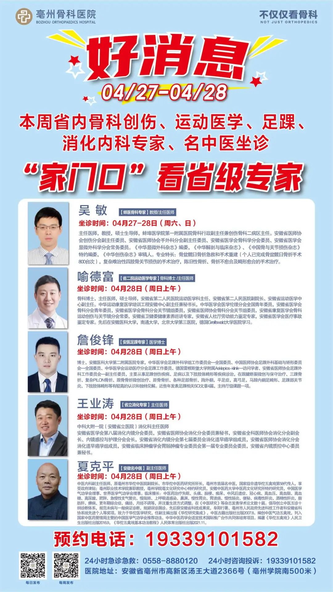 他們將以權威專業(yè)的醫(yī)術,為廣大患者提供精準的診療服務。無論您是深受骨傷困擾,或是有運動損傷疑慮,抑或足踝問題久治不愈,把握良機,讓專家為您的健康保駕護航,重煥活力人生!
