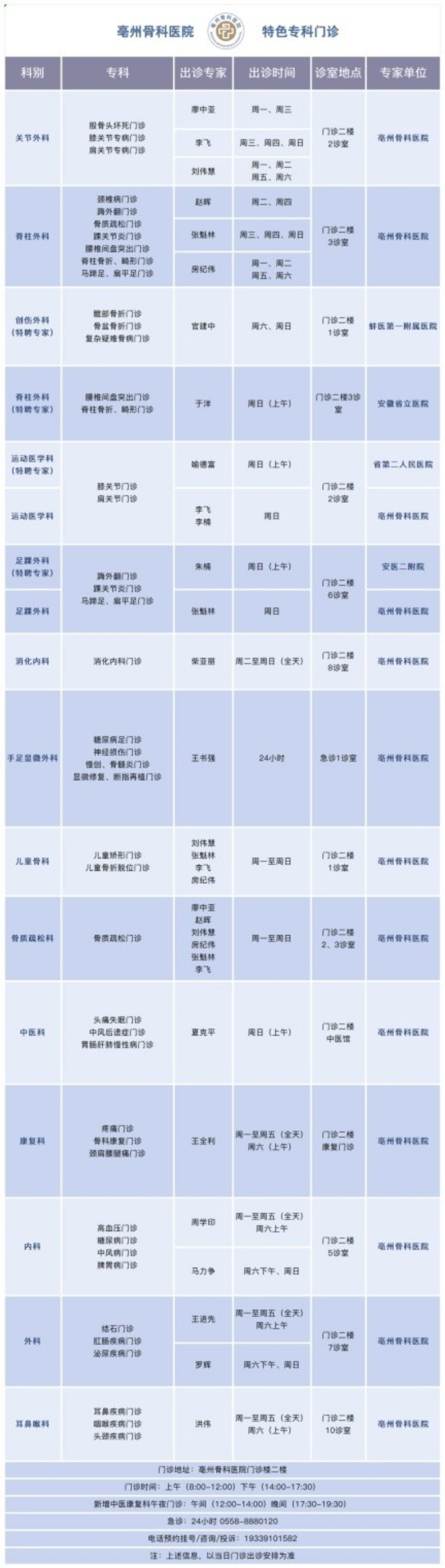 24小時(shí)急診急救電話:0558-8880120 24小時(shí)咨詢投訴:19339101582 普惠體檢中心:0558-5520830