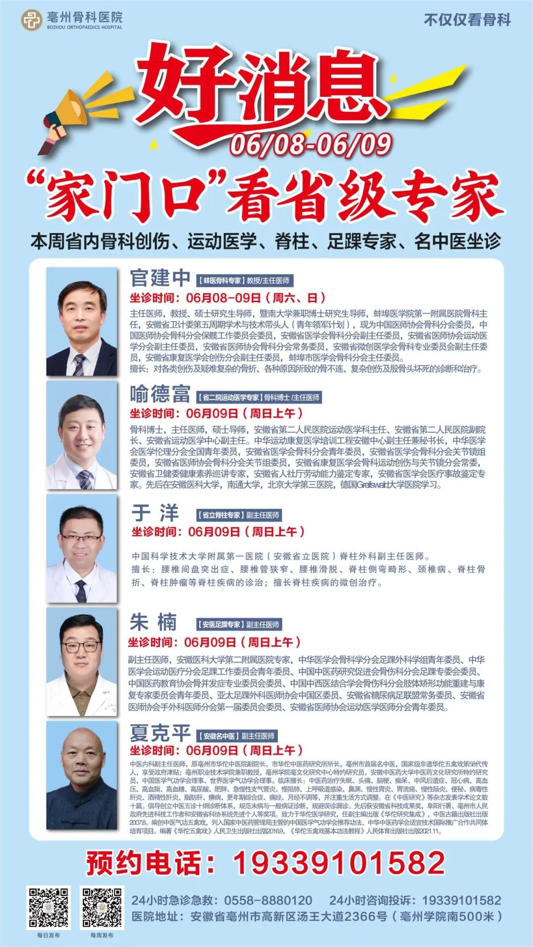 他們將以權威專業(yè)的醫(yī)術,為廣大患者提供精準的診療服務。無論您是深受骨傷困擾,或是有運動損傷疑慮,抑或足踝問題久治不愈,把握良機,讓專家為您的健康保駕護航,重煥活力人生!