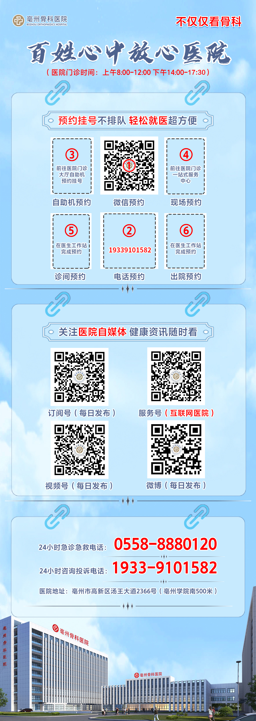 24小時急診急救電話:0558-8880120 24小時咨詢投訴:19339101582 普惠體檢中心:0558-5520830