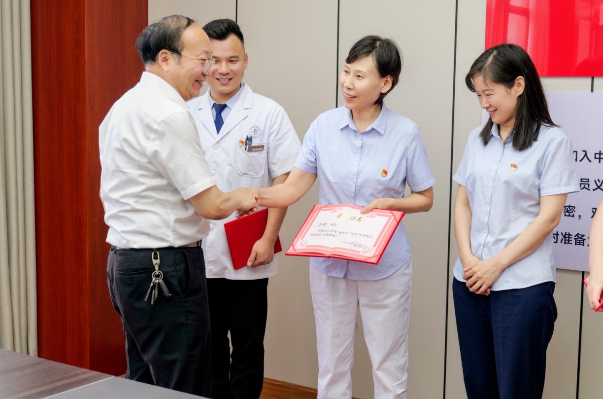 陳敬書記向受到表彰的優(yōu)秀黨員表示祝賀!向辛勤奮戰(zhàn)在醫(yī)院各個(gè)崗位上的廣大黨員致以節(jié)日的問(wèn)候!