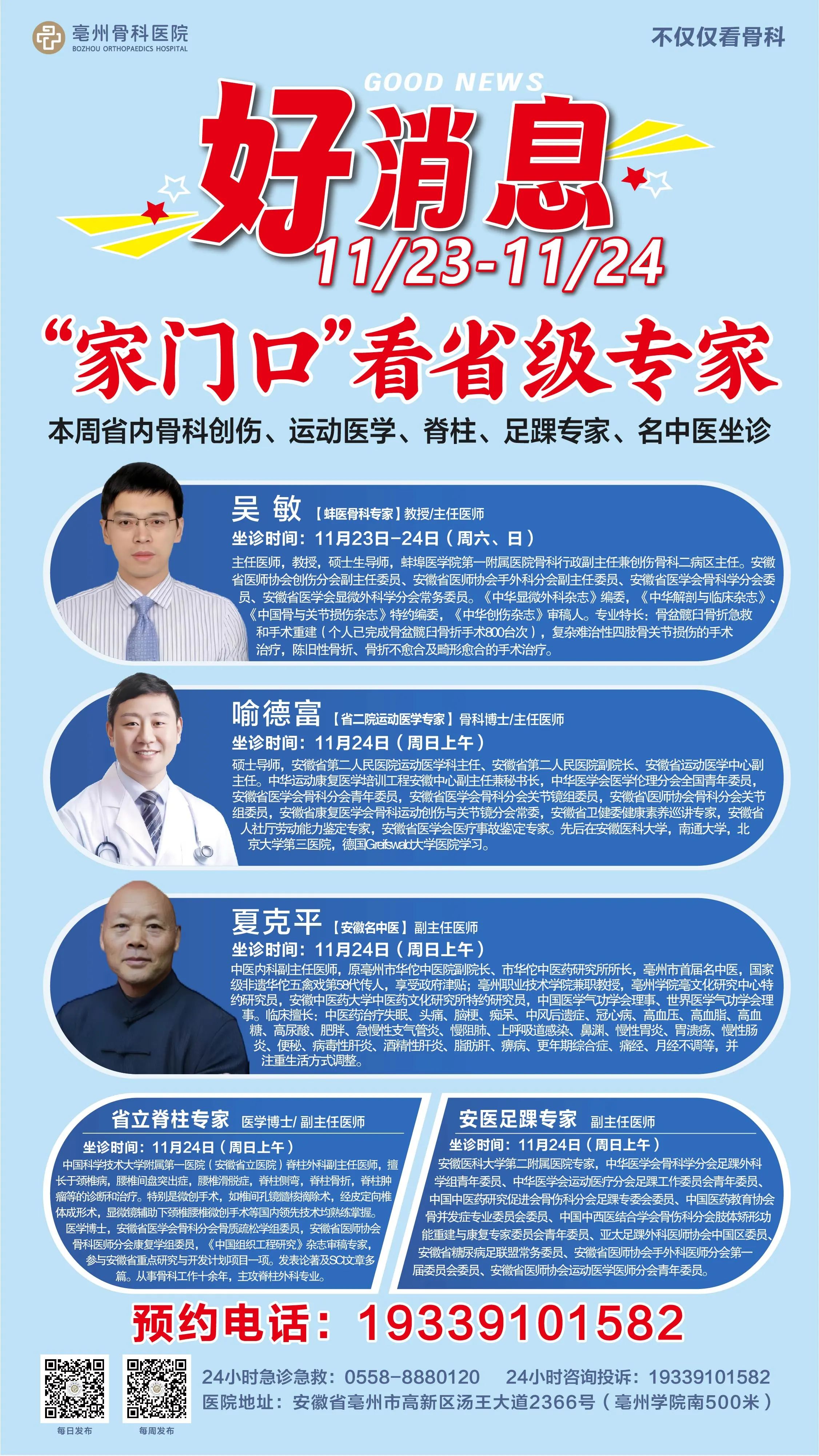 他們將以權(quán)威專業(yè)的醫(yī)術(shù),為廣大患者提供精準(zhǔn)的診療服務(wù)。無論您是深受骨傷困擾,或是有運(yùn)動(dòng)損傷疑慮,抑或足踝問題久治不愈,把握良機(jī),讓專家為您的健康保駕護(hù)航,重?zé)ɑ盍θ松?/span>