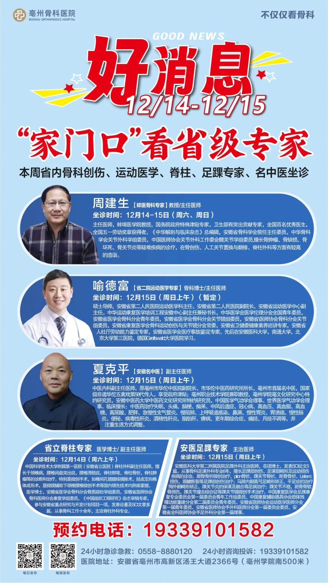 他們將以權(quán)威專業(yè)的醫(yī)術(shù),為廣大患者提供精準(zhǔn)的診療服務(wù)。無論您是深受骨傷困擾,或是有運(yùn)動損傷疑慮,抑或足踝問題久治不愈,把握良機(jī),讓專家為您的健康保駕護(hù)航,重?zé)ɑ盍θ松?/span>