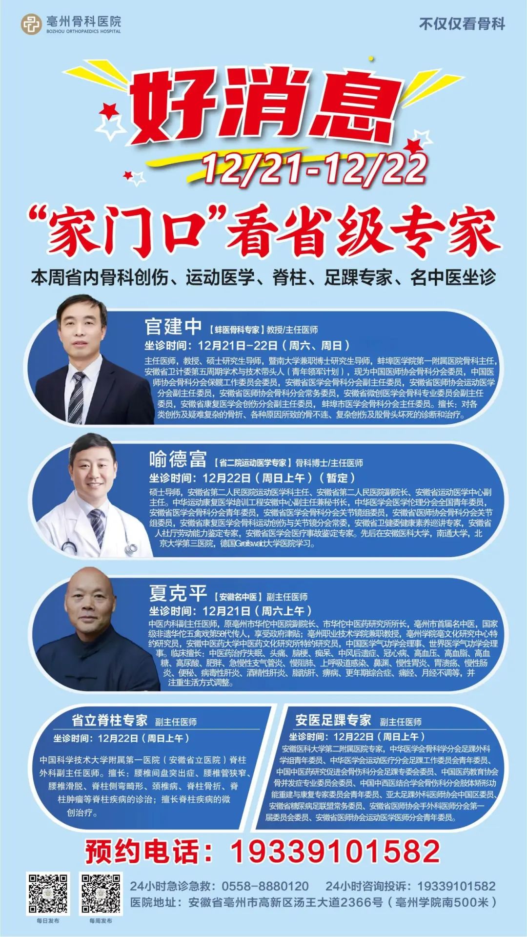 他們將以權(quán)威專業(yè)的醫(yī)術(shù),為廣大患者提供精準(zhǔn)的診療服務(wù)。無(wú)論您是深受骨傷困擾,或是有運(yùn)動(dòng)損傷疑慮,抑或足踝問(wèn)題久治不愈,把握良機(jī),讓專家為您的健康保駕護(hù)航,重?zé)ɑ盍θ松?/span>