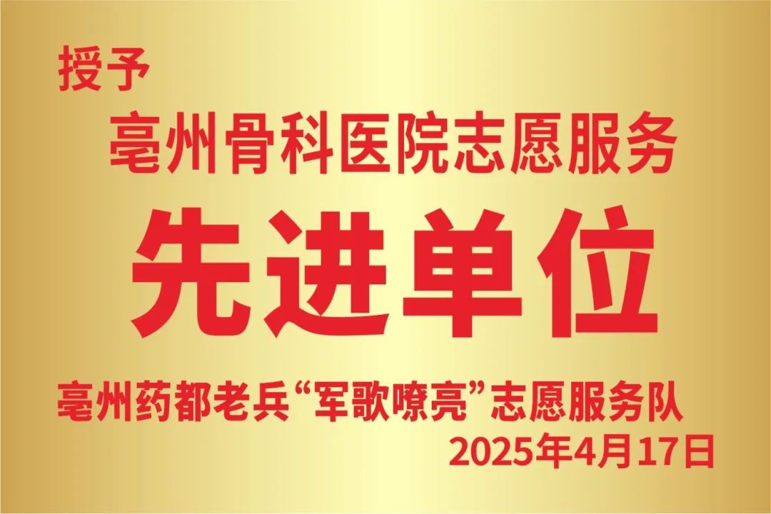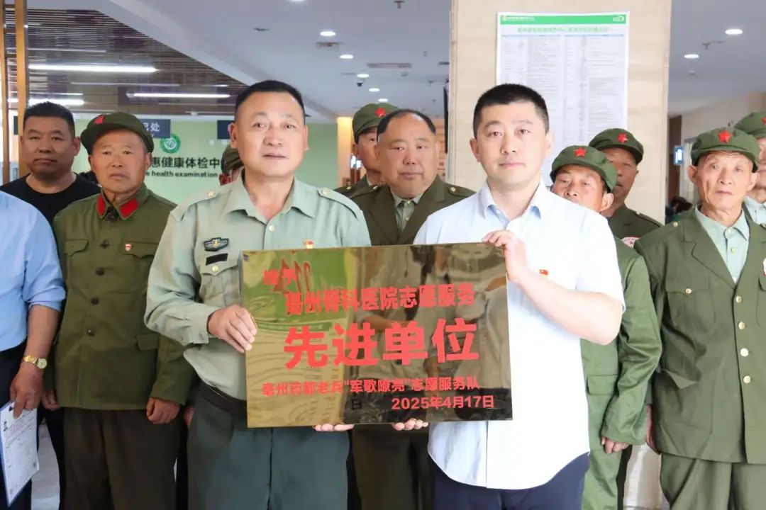我院舉行了簡短而莊重的授牌儀式。亳州藥都老兵“軍歌嘹亮”志愿服務隊為我院授予“志愿服務先進單位”牌匾,感謝醫(yī)院長期以來對退役軍人群體的關心與支持。