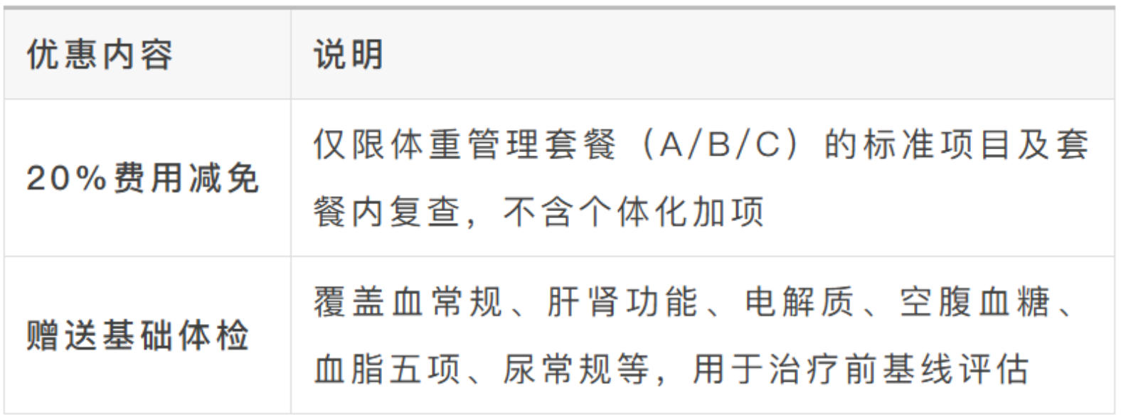 惠民政策:落實(shí)我院惠民舉措、減輕患者經(jīng)濟(jì)負(fù)擔(dān),體重管理項(xiàng)目即日起開始為前50名完成登記并通過初篩的提供優(yōu)惠政策,名額有限先到先得。
