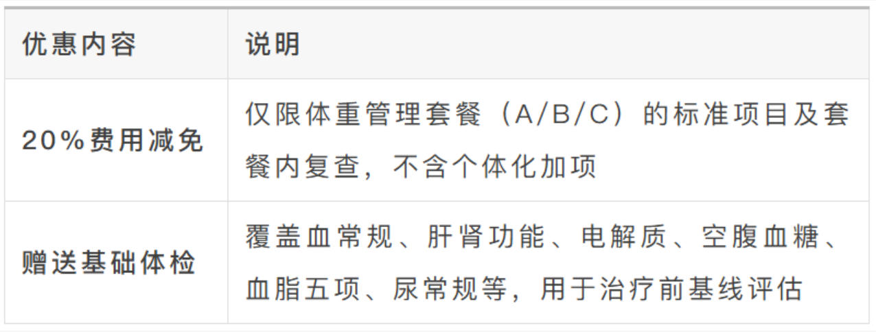 落實(shí)我院惠民舉措、減輕患者經(jīng)濟(jì)負(fù)擔(dān),體重管理項(xiàng)目即日起開(kāi)始為前50名完成登記并通過(guò)初篩的提供優(yōu)惠政策,名額有限先到先得。
