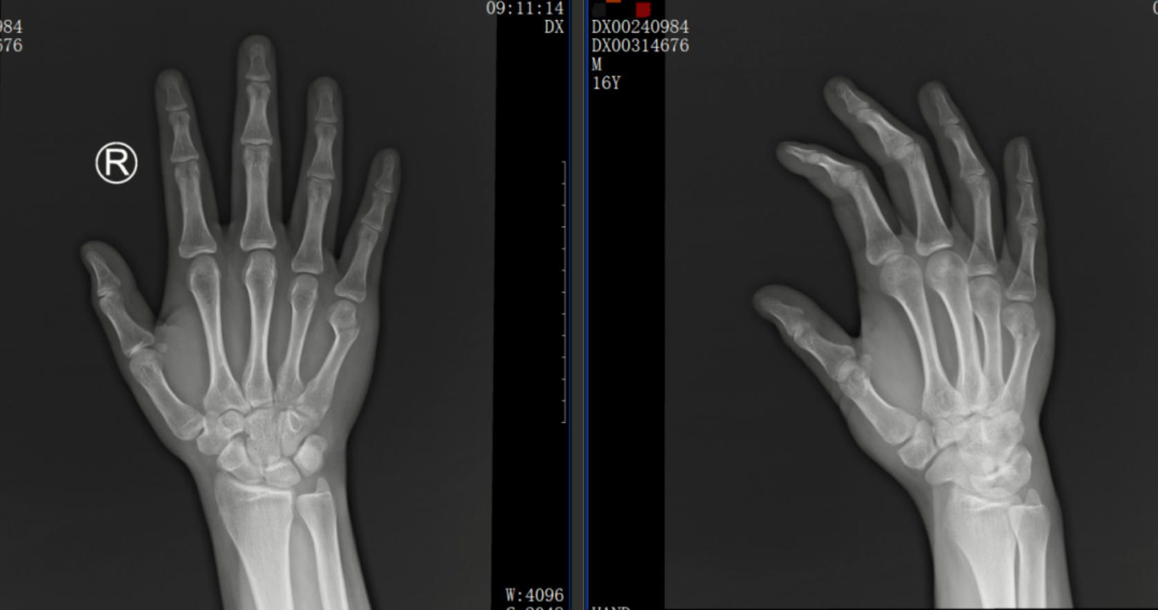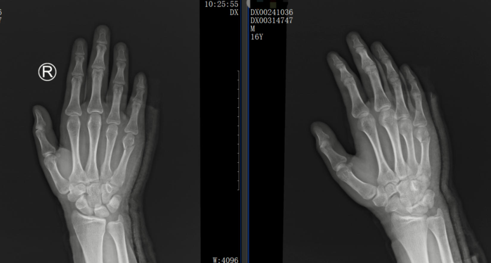 一位16歲的青少年外傷導(dǎo)致右手第五掌骨頸骨折“拳擊手”骨折,為了尋求治療來到我院,經(jīng)過我院中醫(yī)正骨中心醫(yī)師的手法復(fù)位治療,并采用杉樹皮小夾板聯(lián)合石膏固定,3周后,骨痂便順利形成,骨折愈合良好。