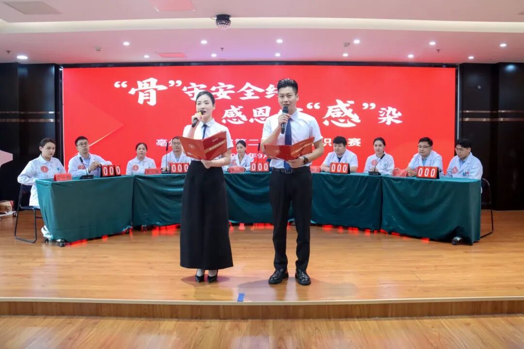 2025年9月26日下午,金秋時(shí)節(jié),院內(nèi)防控教育迎來(lái)一場(chǎng)別開(kāi)生面的比拼。由我院主辦的第二屆“院感知識(shí)競(jìng)賽”在第一會(huì)議室舉行,常永光理事長(zhǎng)、廖中亞院長(zhǎng)、趙暉業(yè)務(wù)院長(zhǎng)等領(lǐng)導(dǎo)出席并觀摩了比賽。比賽由院感科組織策劃,5支參賽隊(duì)伍參加角逐。