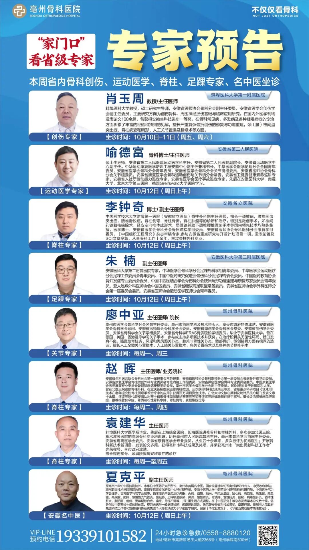 不論您是受到骨傷困擾,還是有運動損傷或足踝問題久治不愈的煩惱,專家們都將為您提供個性化的治療方案,助力您恢復健康,重煥活力人生!