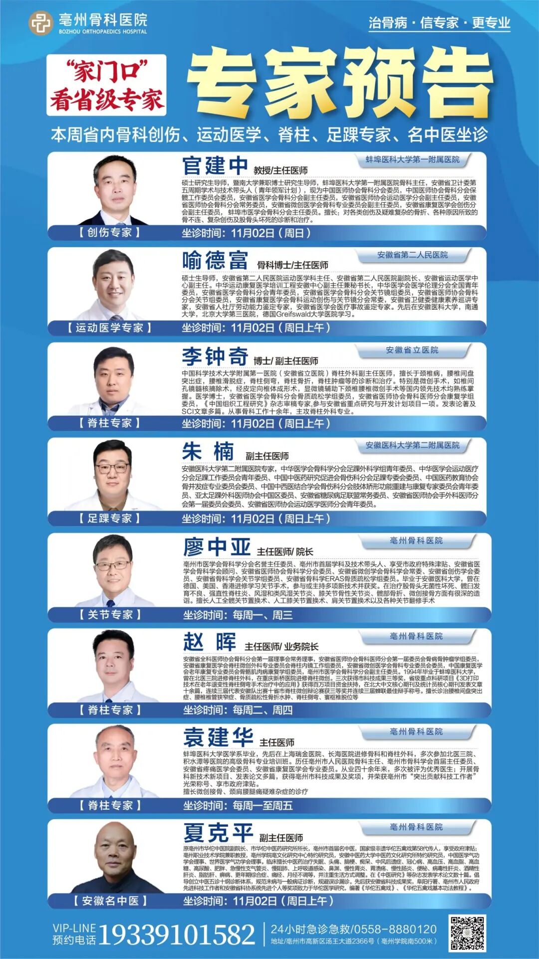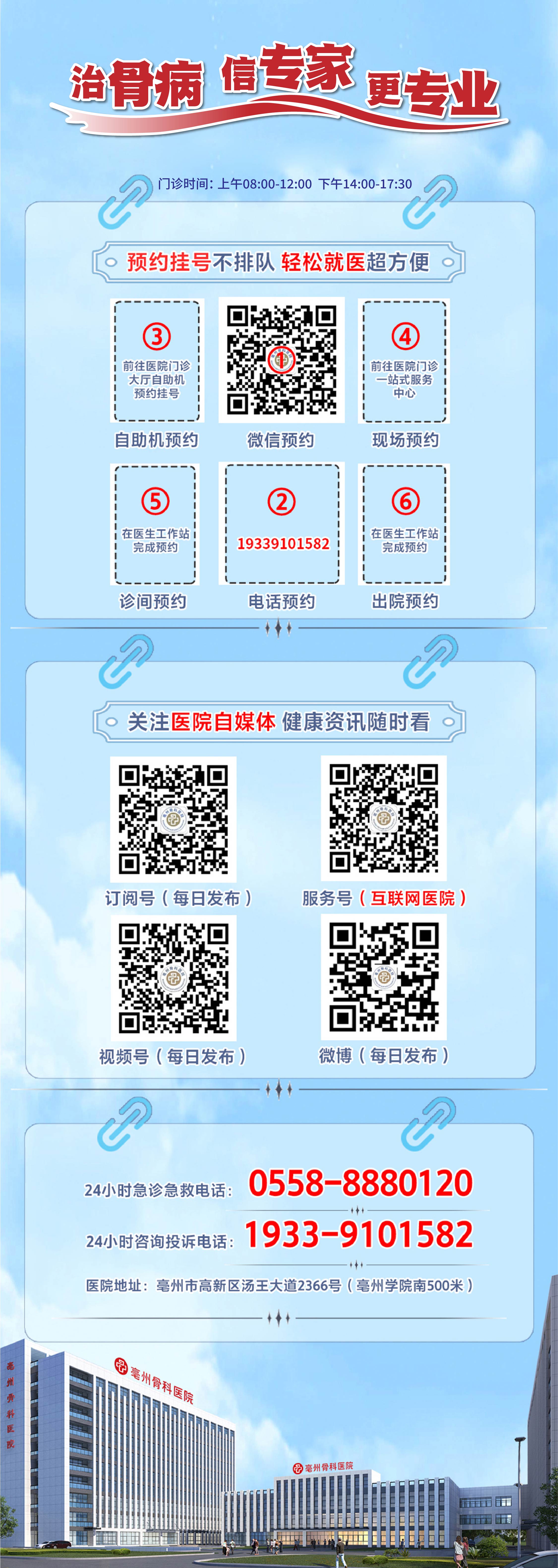 24小時(shí)急診急救電話:0558-8880120 24小時(shí)咨詢投訴:19339101582 普惠體檢中心:0558-5520830