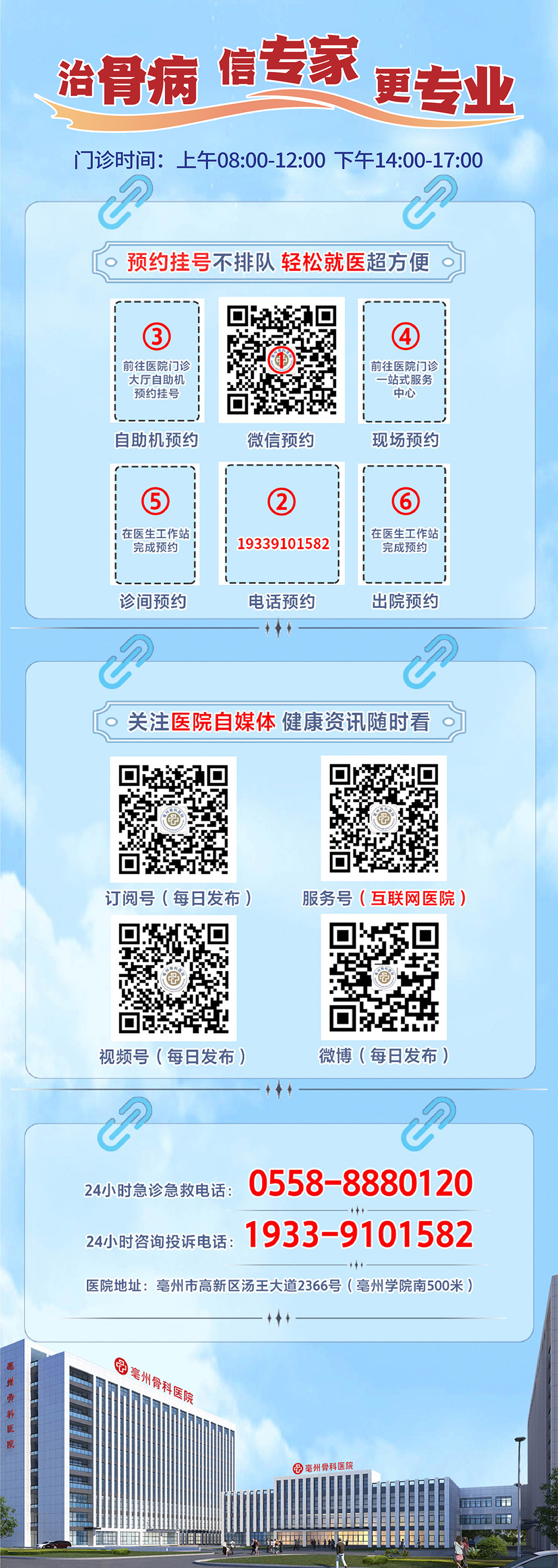 24小時急診急救電話:0558-8880120 24小時咨詢投訴:19339101582 普惠體檢中心:0558-5520830