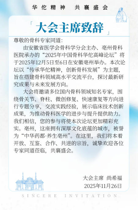 相約華佗故里,共論骨科新程——2025中國骨科華佗高峰論壇啟幕在即