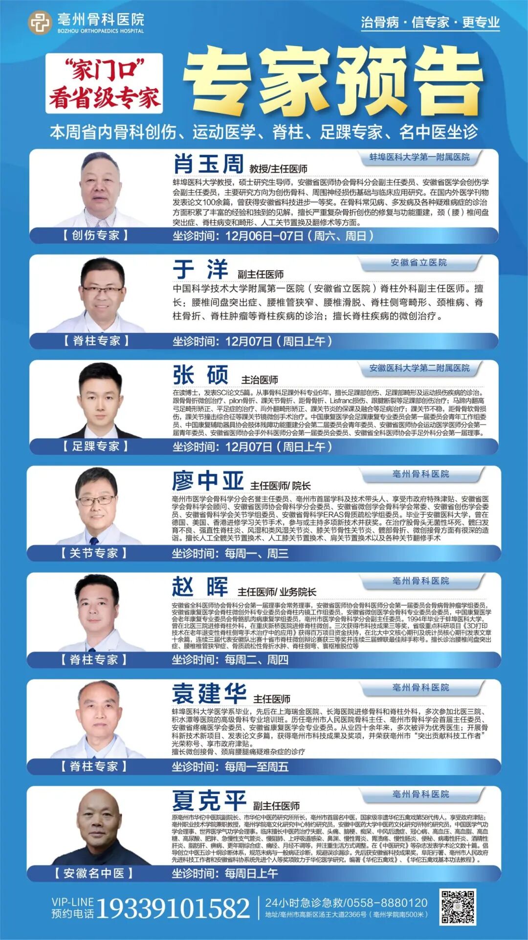 本周省級(jí)專家親臨坐診,為您的健康保駕護(hù)航!我們榮幸邀請(qǐng)到省級(jí)專家來院坐診,他們將憑借豐富的臨床經(jīng)驗(yàn)和專業(yè)技術(shù),為廣大患者提供精準(zhǔn)的診療服務(wù)。