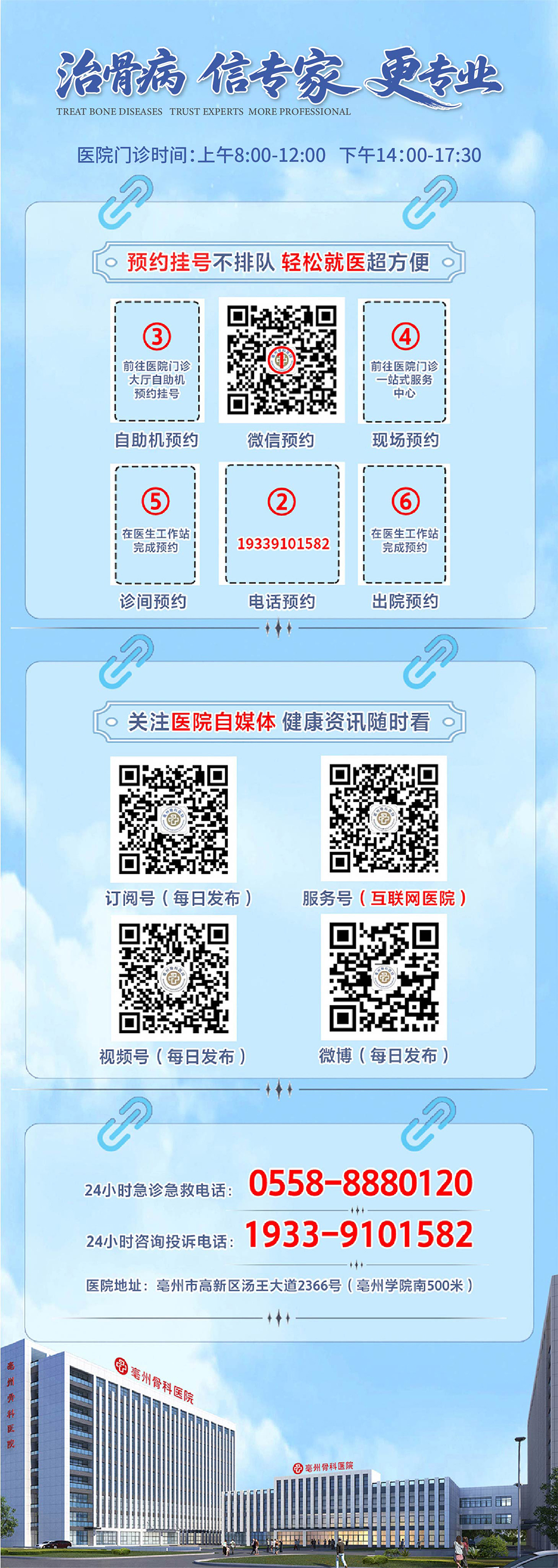 24小時(shí)急診急救電話:0558-8880120 24小時(shí)咨詢投訴:19339101582 普惠體檢中心:0558-5520830