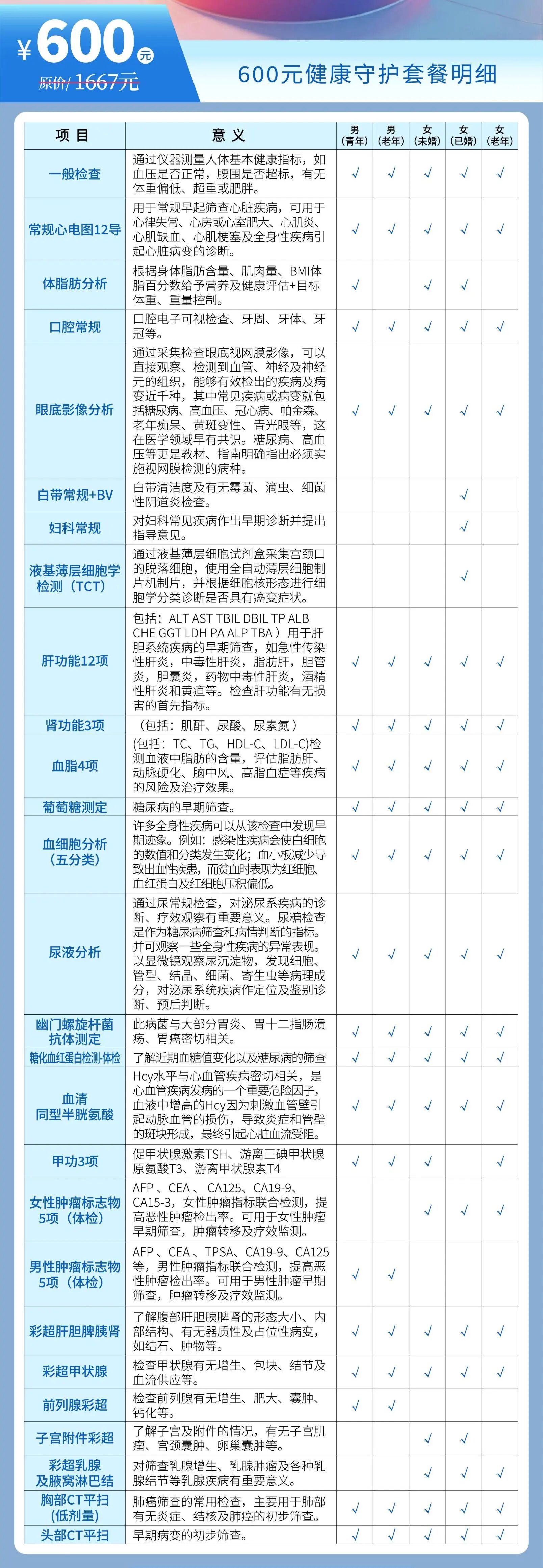 和家人、朋友一起體檢,更省錢 雙人同行以下套餐立減優(yōu)惠: