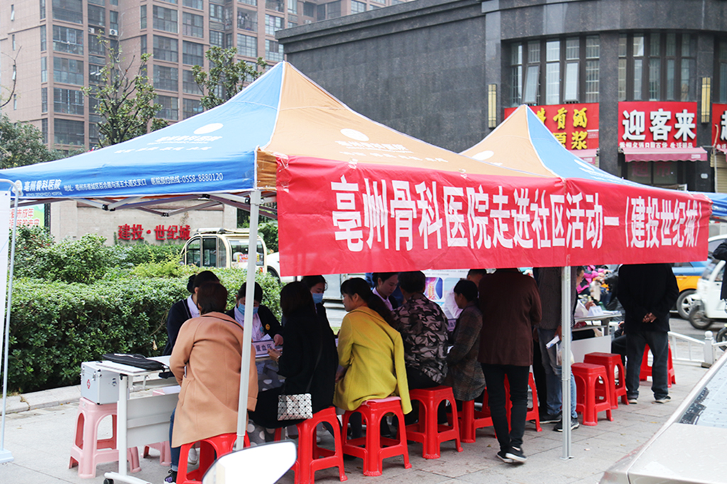 10月12日一大早,深受社區(qū)業(yè)主歡迎的“亳州骨科醫(yī)院義診活動”,在建投世紀城小區(qū)如期拉開了帷幕,為了能夠更好的服務(wù)大家,骨科醫(yī)院出動了“骨科”、“內(nèi)科”、“康復(fù)科”以及“血壓、血糖醫(yī)護小組”等非常精干的主任醫(yī)師和醫(yī)護力量,可以說陣容非常強大、醫(yī)診服務(wù)非常專業(yè),給建投世紀城和周邊小區(qū)業(yè)主帶來了福音。