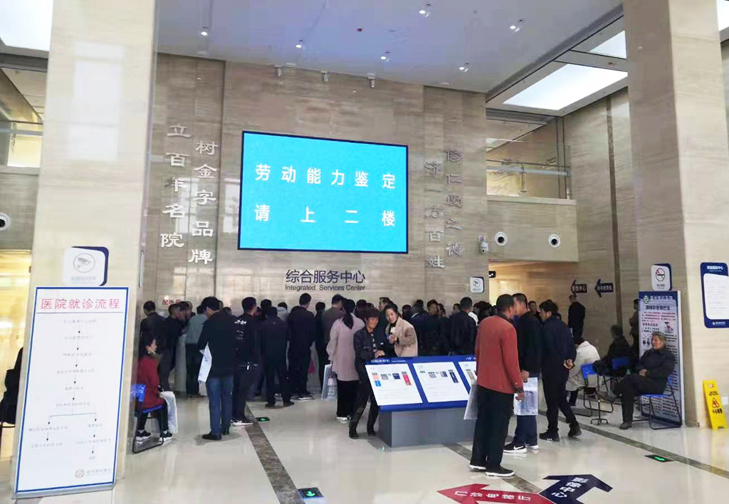 鑒定當日,我院門診一樓外電子屏醒目顯示“亳州市2019年第5批次勞動能力鑒定”引導鑒定人員,大廳一樓“綜合服務中心”設立導醫(yī)臺進行相應的發(fā)號工作,鑒定對象至此領取鑒定序號后進行有序等候,鑒定開始后轉至門診二樓出示身份證,經(jīng)過工作人員驗證無誤并拍照后,在工作人員引導下進行鑒定。