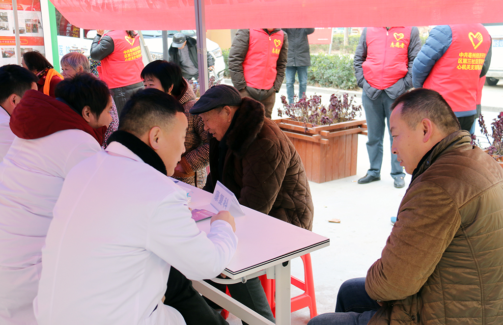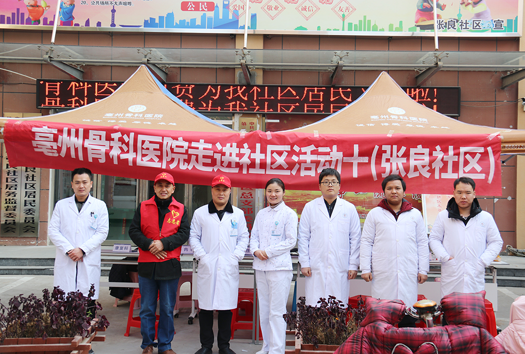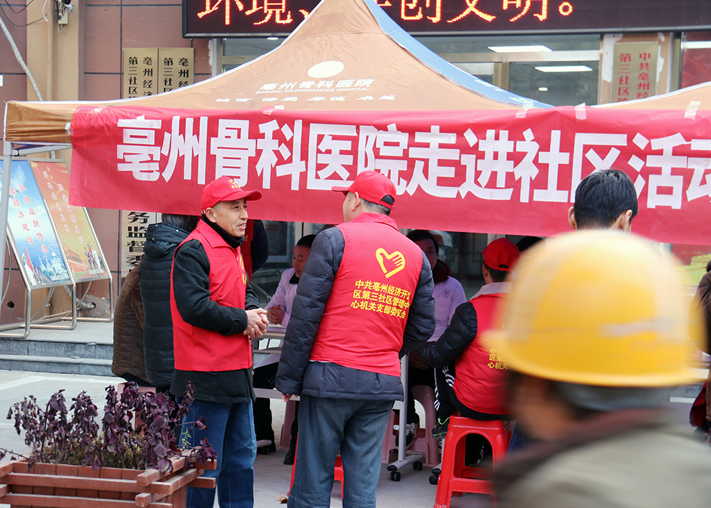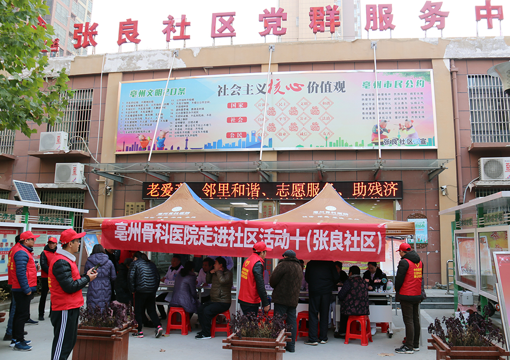 早晨八時(shí)許,張良社區(qū)黨群服務(wù)中心門前人頭攢動,社區(qū)黨支部的志愿者與我們亳州骨科醫(yī)院的同仁們一起,相互配合,已經(jīng)開始為趕早過來的第一批群眾服務(wù)和問診了。
