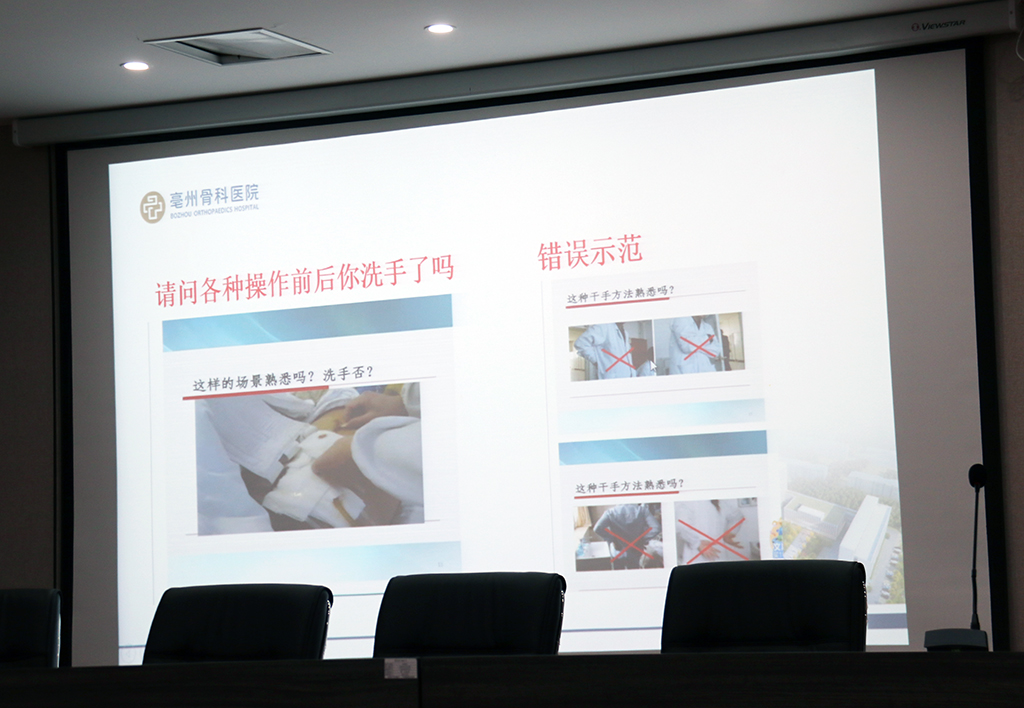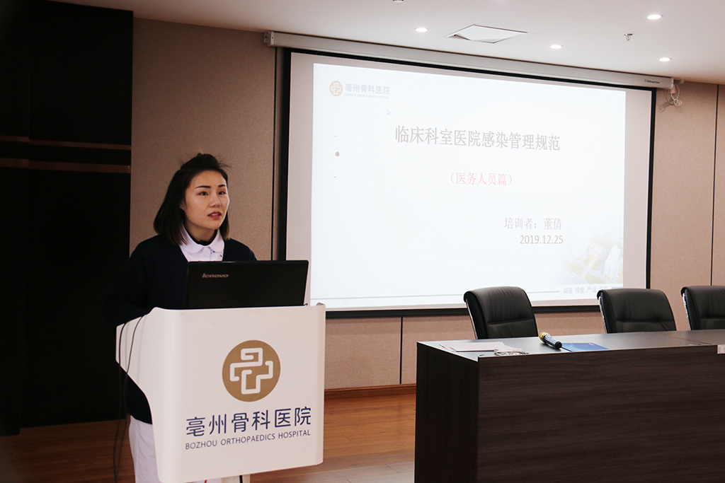 ?為了進(jìn)一步強(qiáng)化我院醫(yī)務(wù)人員的院感防控意識,提高醫(yī)務(wù)人員的防控水平,更好地為患者提供安全放心的醫(yī)療環(huán)境。12月月26日下午,亳州骨科醫(yī)院在1號樓3樓第一會議室舉辦了2019年末院感知識培訓(xùn)會。本次會議由院感科干事董倩主講,全院醫(yī)護(hù)人員(非值班)參加了本次學(xué)習(xí)。