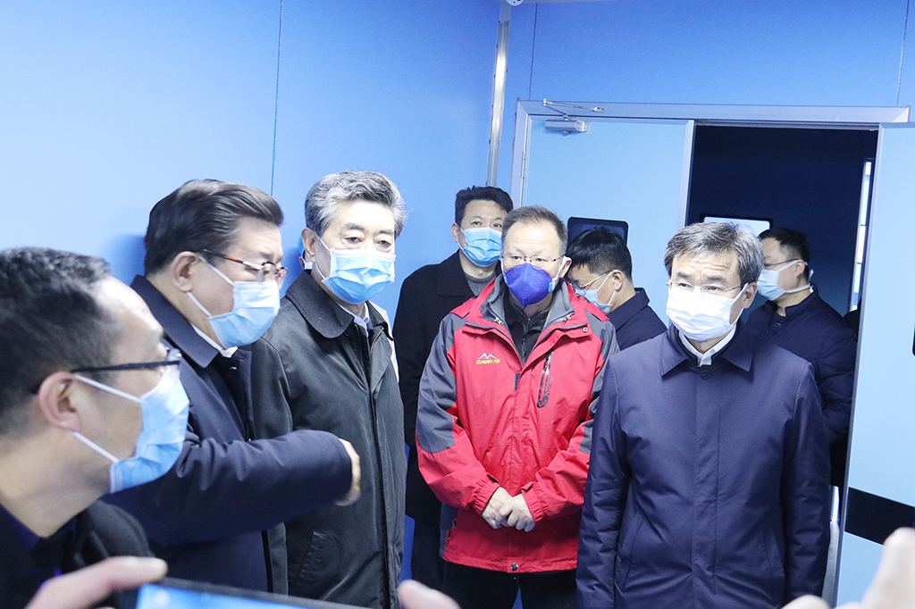 鄧向陽副省長(zhǎng)先后走進(jìn)發(fā)熱門診一、二、三樓,查看科室布局及疏導(dǎo)指示情況,之后走進(jìn)急診病房、護(hù)士隔離間、監(jiān)護(hù)室、手術(shù)室等查看設(shè)備配備情況。