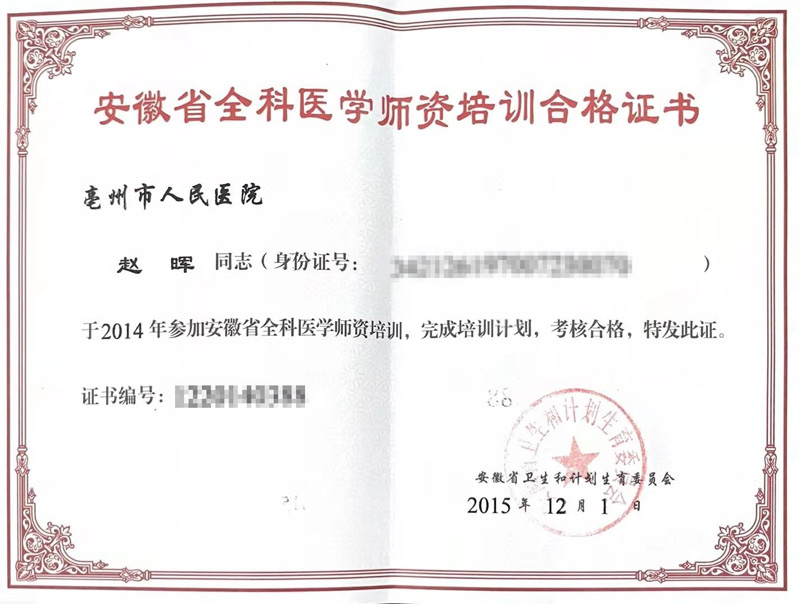 安徽省全科醫(yī)學(xué)師資培訓(xùn)合格證書