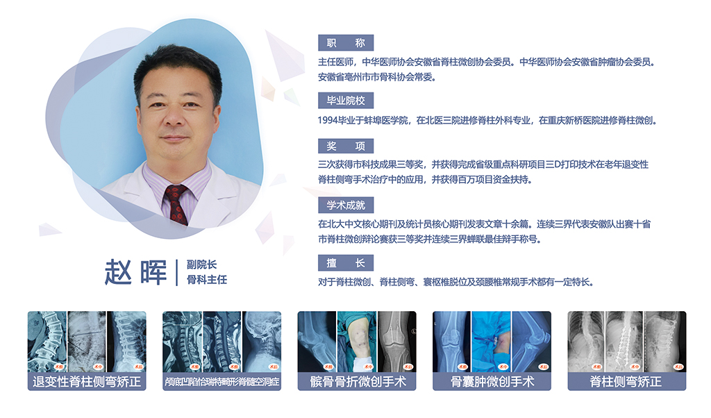 每周三上午(8:00-12:00)亳州骨科醫(yī)院趙暉副院長在門診樓二樓專家門診坐診。